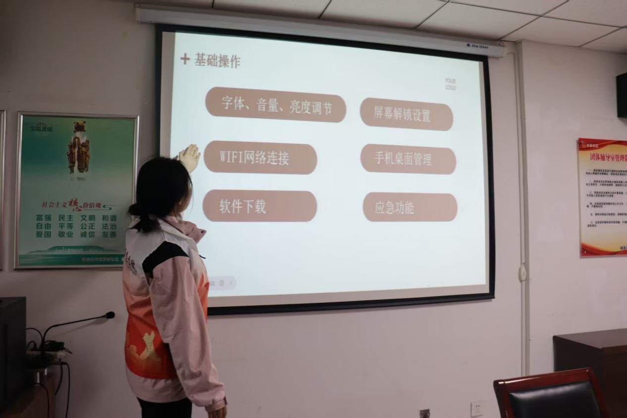 为切实帮助蓝湾社区老年人解决使用智能手机中遇到的困难,助力他们更好地适应数字化时代,跨越“数字鸿沟”,10月19日上午,智达书院志信社会实践团赴平顶山市城乡一体化示范区湖滨路街道蓝湾社区,开展了以“智享生活,青伴银龄”为主题的智能手机使用教学活动,志愿者们用耐心与爱心为社区老人送去了温暖与关怀。