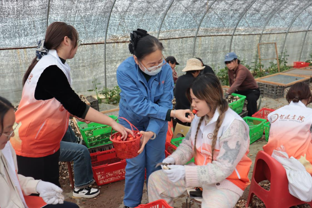 劳作间隙,田间弥漫开一阵清甜的果香。热情好客的农户们端来了一筐筐刚从附近大棚采摘来的新鲜草莓,送到师生手中。“同学们辛苦啦,快来尝尝这地里现摘的草莓!”