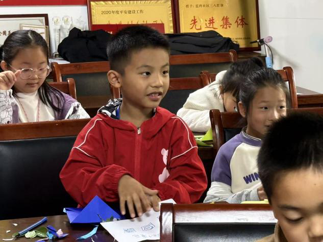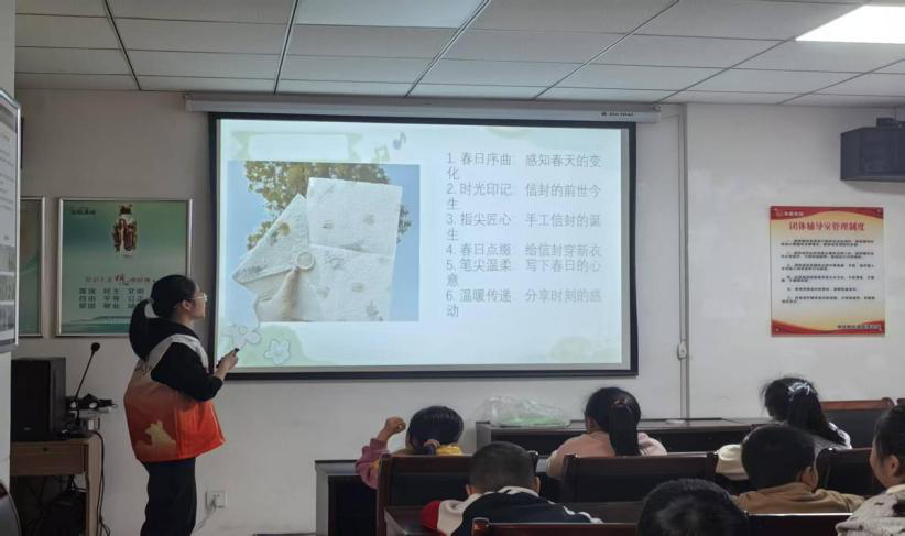 活动伊始,志愿者生动讲解信封的用途与意义,并用浅显易懂的语言,一步步演示了信封折叠、粘贴、装饰的小技巧,孩子们瞪着圆溜溜的眼睛,听得格外认真。