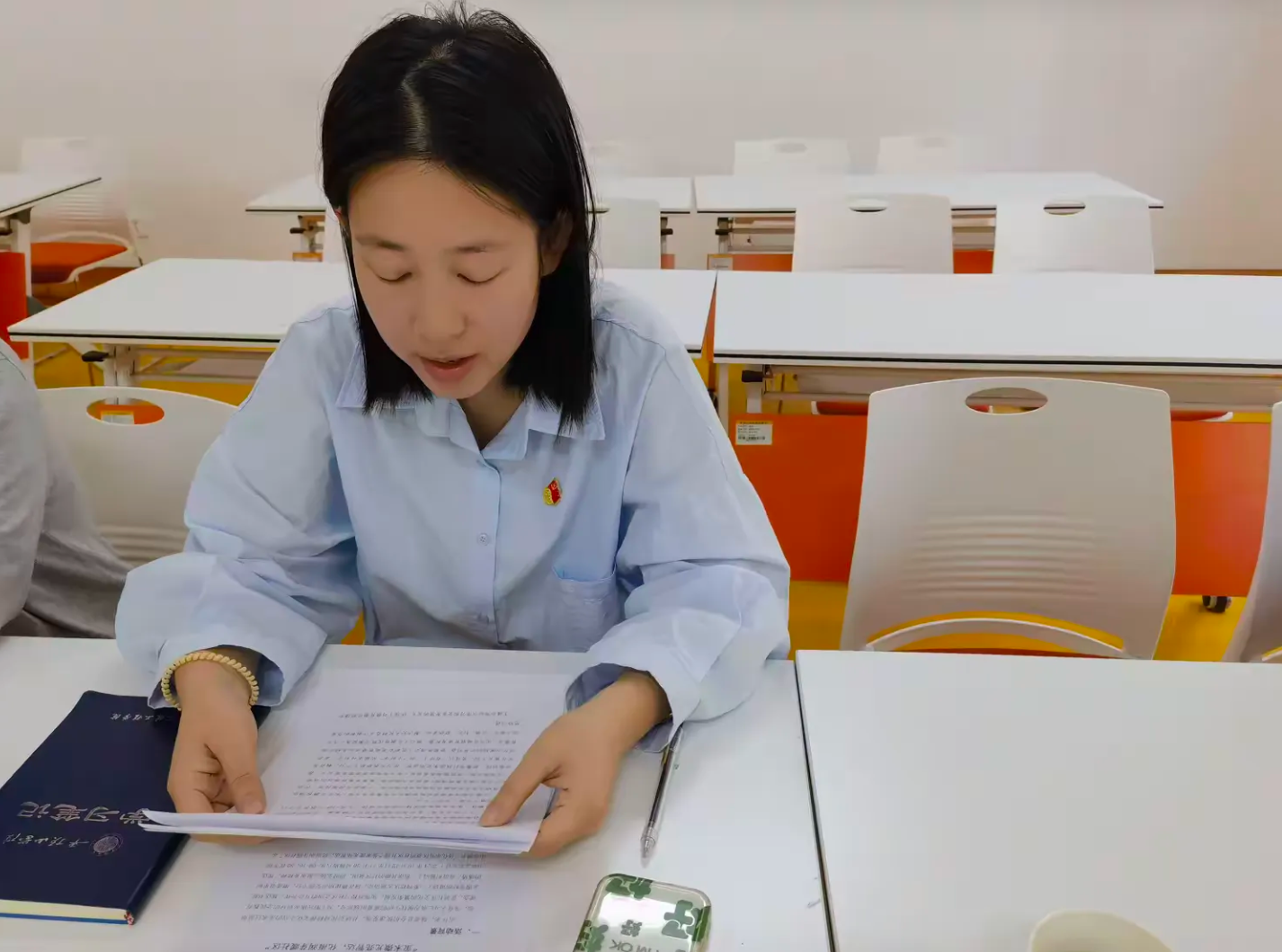 王雪妍同志带领全体党员共同深入学习习近平总书记在全国教育大会上的讲话。大家表示,要牢记习近平总书记嘱托,奋楫笃行,挺膺担当,为建设教育强国贡献青春力量。
