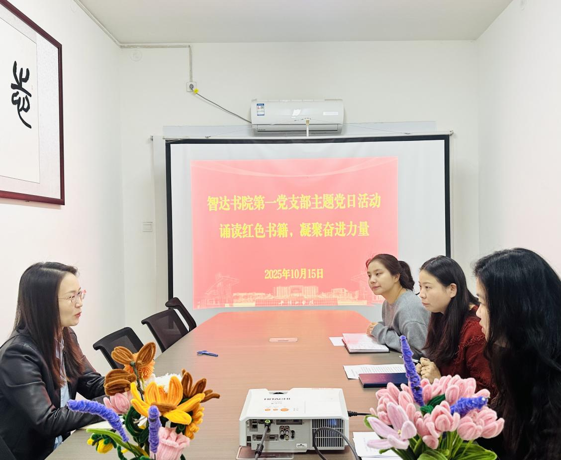 2025年10月15日,智达书院第一党支部在智达书院15111会议室开展“诵读红色书籍,凝聚奋进力量”主题党日活动,书院全体党员参与此次活动。